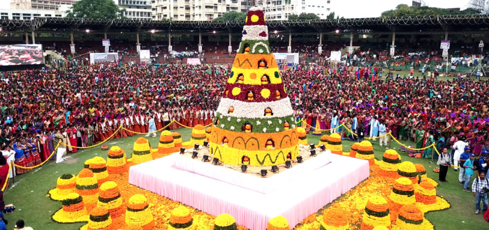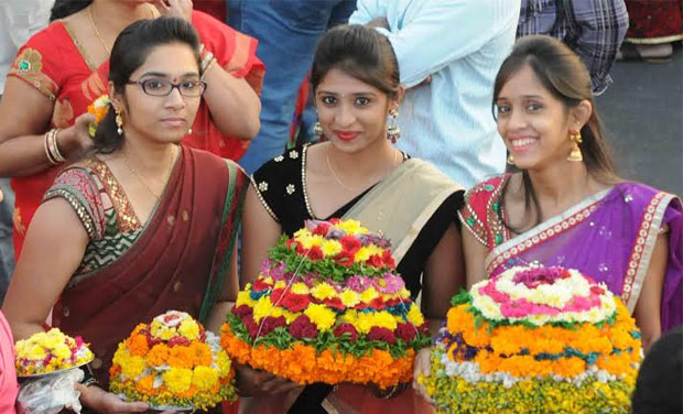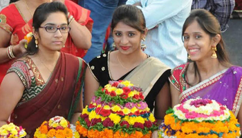 It is the festival for feminine felicitation. On this special occasion women dress up in the traditional sari combining it with jewels and other accessories. Teenage Girls wear Langa-Oni/Half-Sarees/Lehenga Choli combining it with jewels in order to bring out the traditional grace of the attire. The 2017 dates are September 20–28. Day1- Engili pula Bhathukamma Day2-Atukula Bhathukamma Day3-Muddappappu Bhathukamma Day4-Nanbiyyam Bhathukamma Day5-Atla Bhathukamma Day6-Aligina Bhathukamma (alaka Bhathukamma) Day7-Vepakayala Bhathukamma Day8-Venna muddala Bhathukamma Day9-Saddula Bhathukamma brothers bring flowers to mom and sisters.